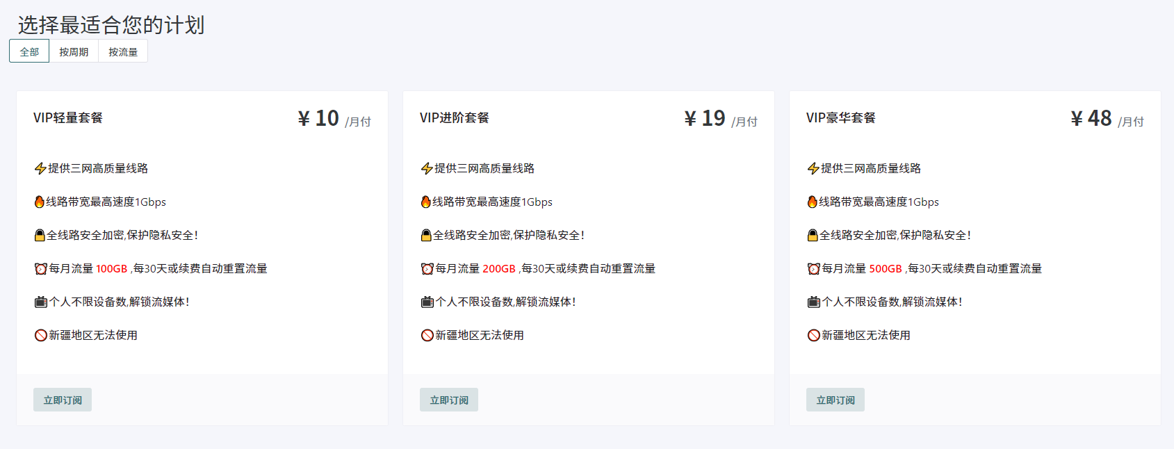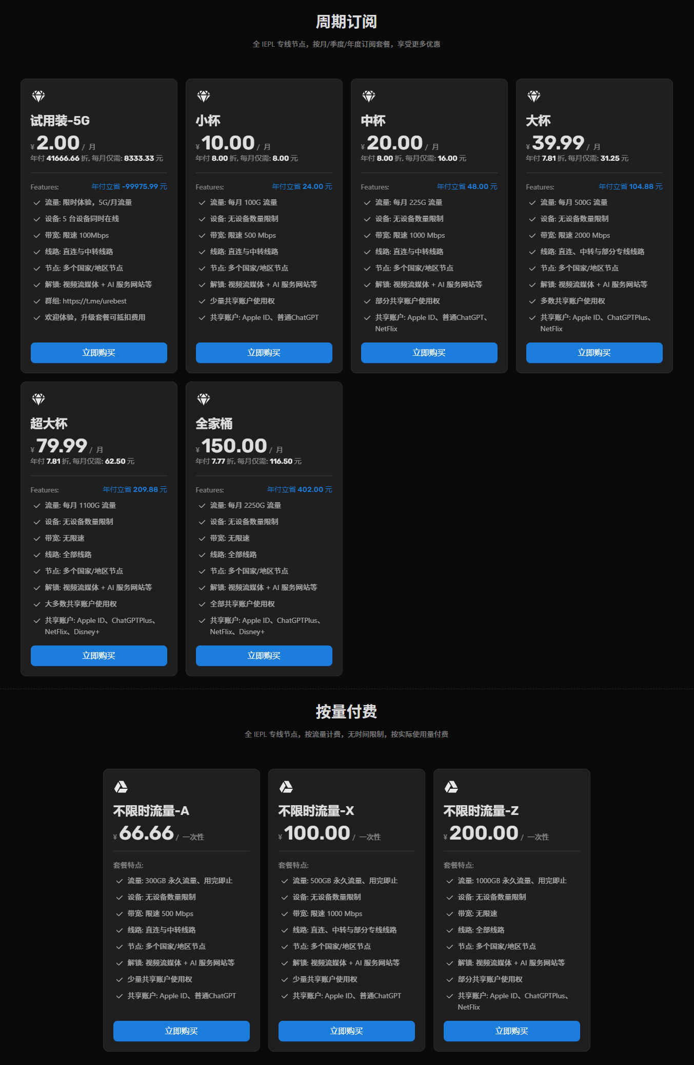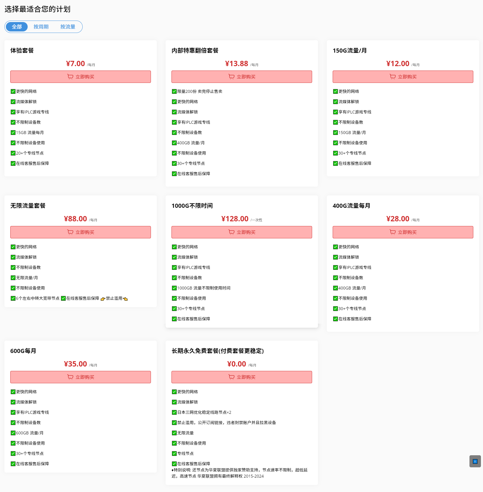 价格:可以购买一天1元(不限流量),10元/30天/300G